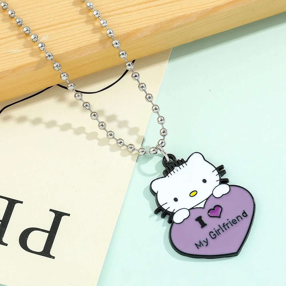 1 Pair Sanrio Hello Kitty Couple Necklace I Love My Girlfriend Boyfriend Pendant Necklace for Valentine's Day Gifts Accessories