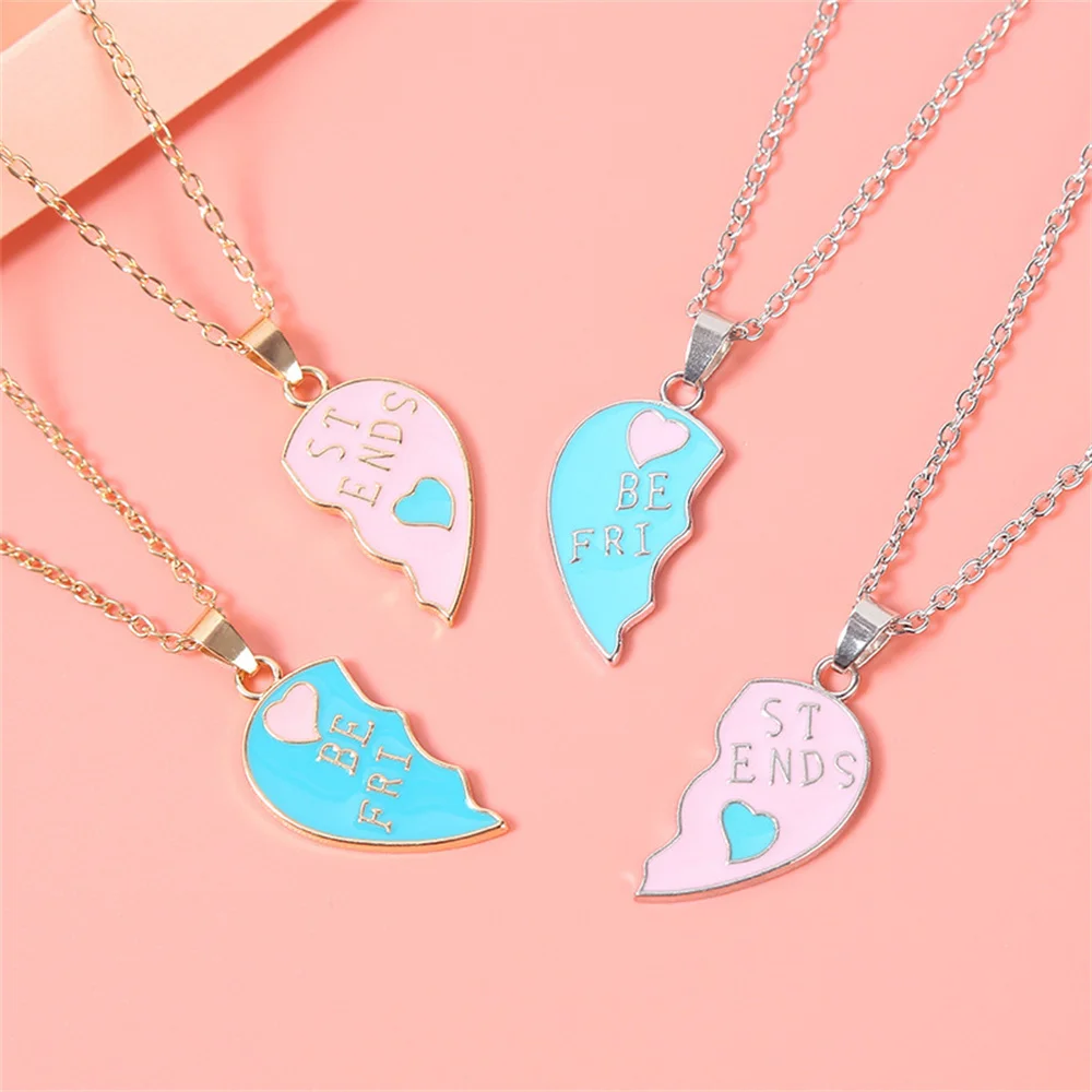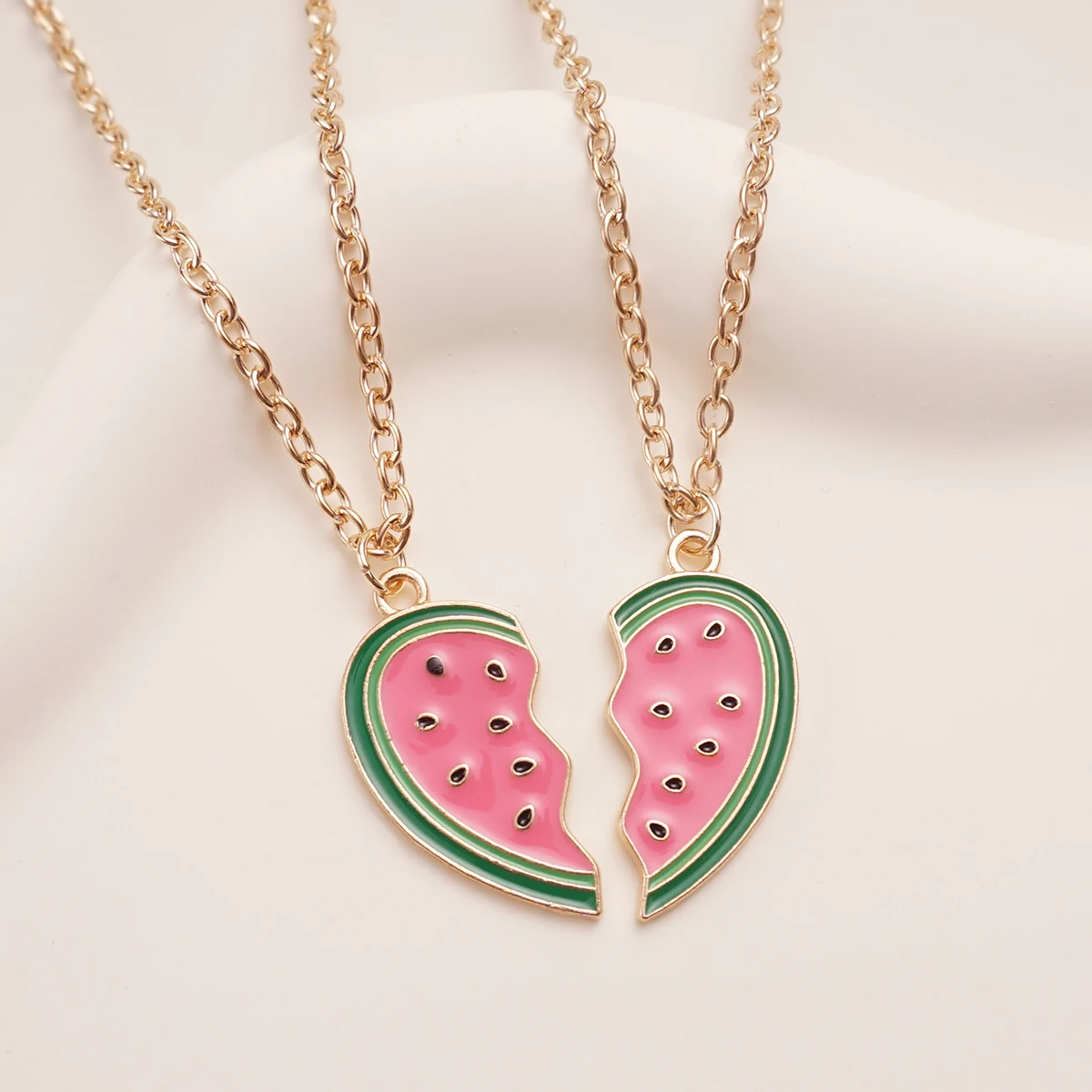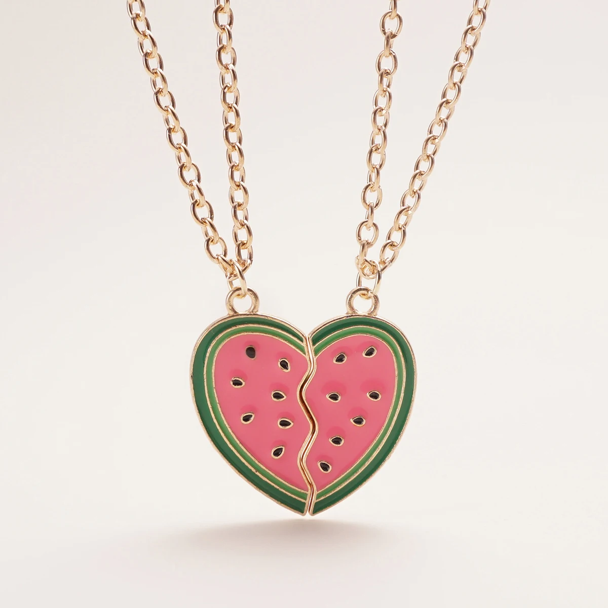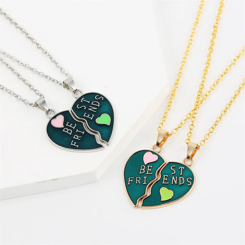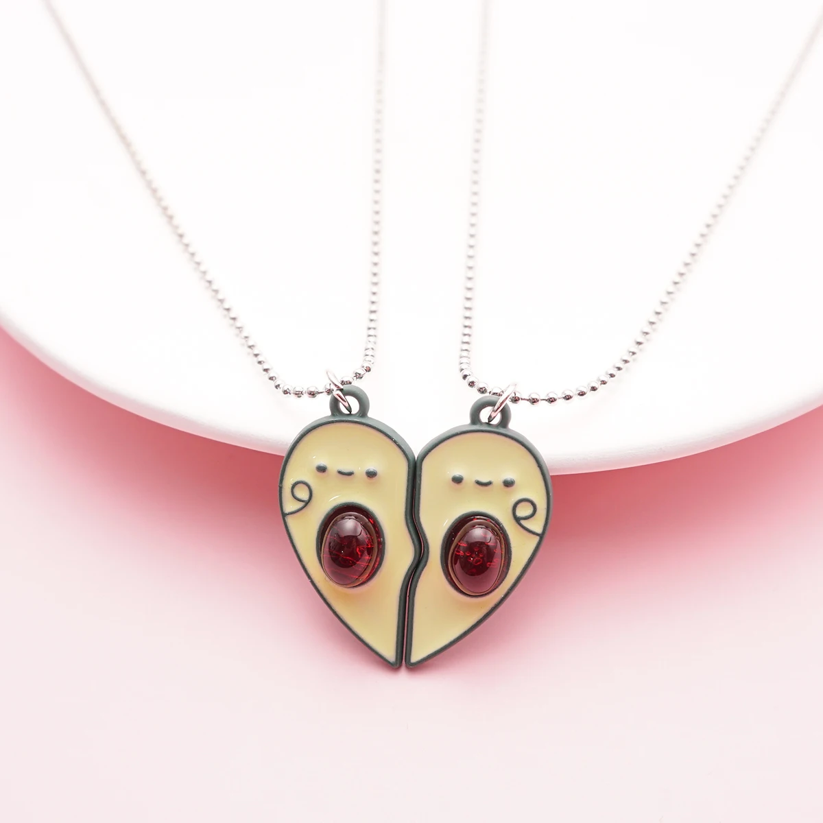 2 Pcs/Set Best Friends Pendant Necklace for Women Cute Avocado Lover Broken Heart Clavicle Chain BFF Best Friends Jewelry Gifts