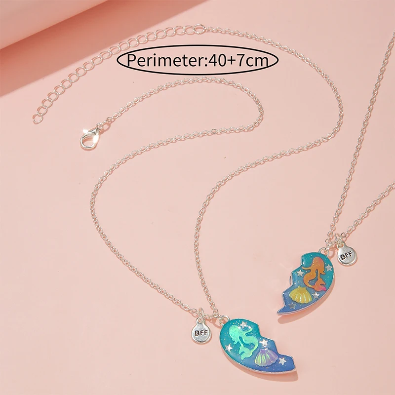 2Pcs/set Ocean Mermaid Shell BFF Necklace Broken Heart Shaped Pendant Necklaces for Girls Best Friend Jewelry Friendship Gift