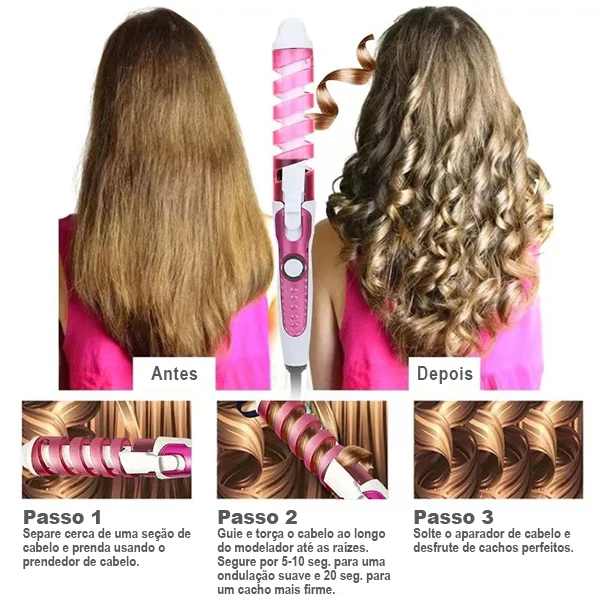 Bobs para enrolar cabelo,cachos modelador,bigudinhos para cachear o cabelo,Modelador Cacheador Ceramic Espiral Bivolt 20mm 200ºc