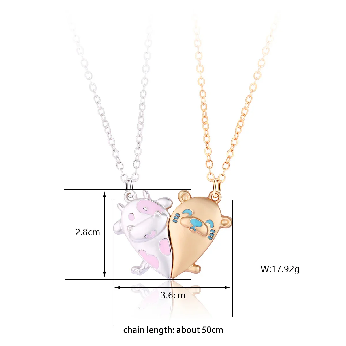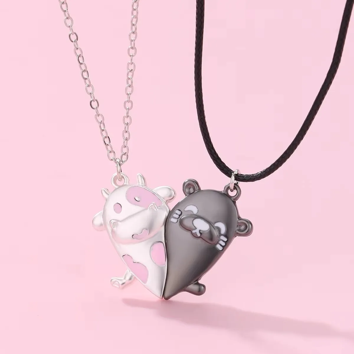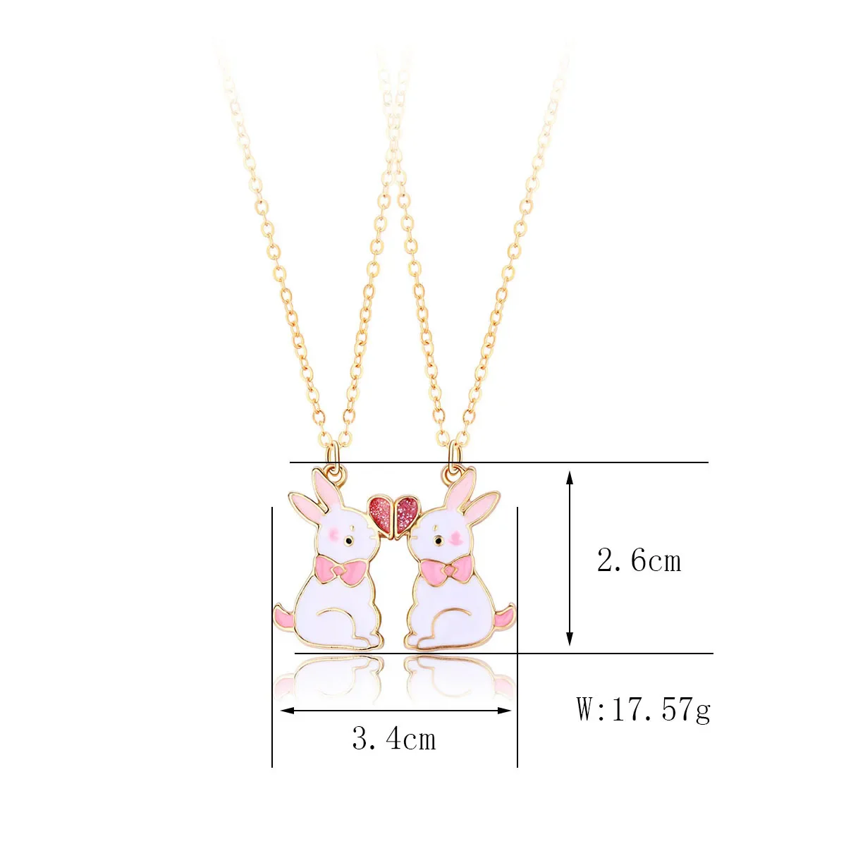 Cute Animal Magnet Necklaces for Women Girls Kawaii Best Friends Cat Rabbit Animal Pendant Chain BFF Friendship Jewelry Gifts
