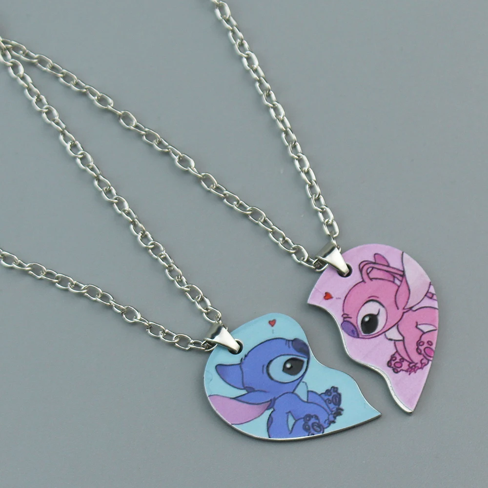 Lilo & Stitchs Necklaces Anime Stitch Heart Necklace Photo BFF Pendant Cute for Best Friends Accessories Jewelry Gifts