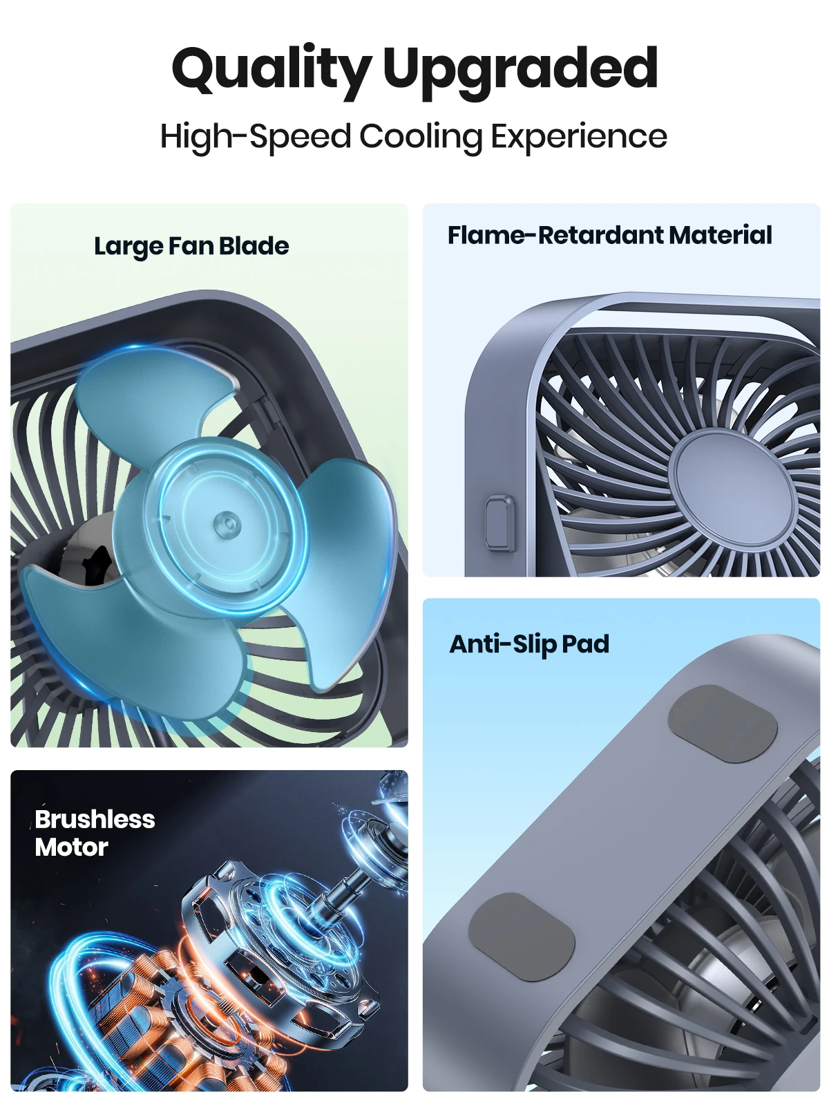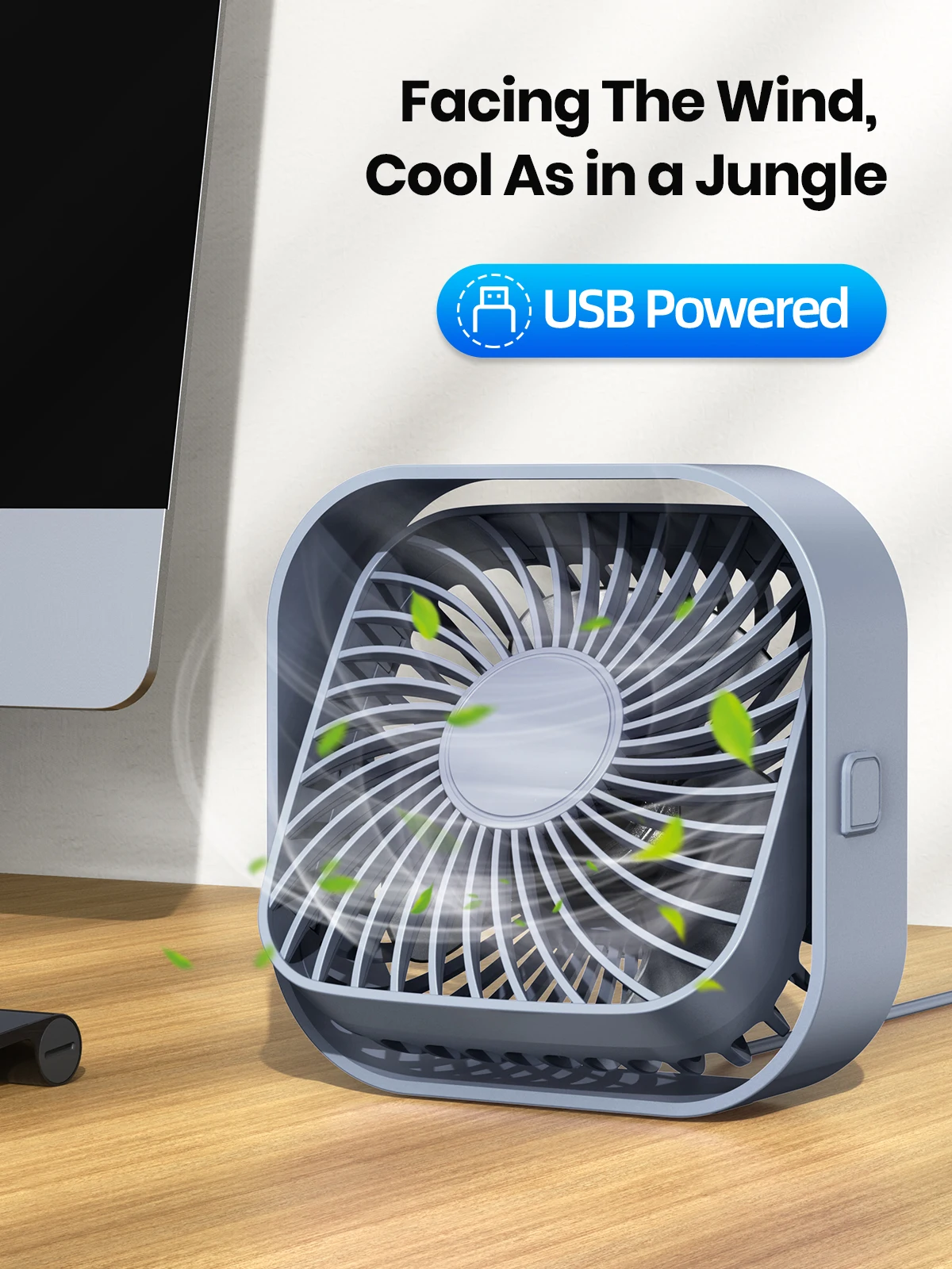 mini ventilador portátil de mesa usb, forte fluxo de ar e operação silenciosa, vento de 3 velocidades, 360 ° giratório, ventiladores