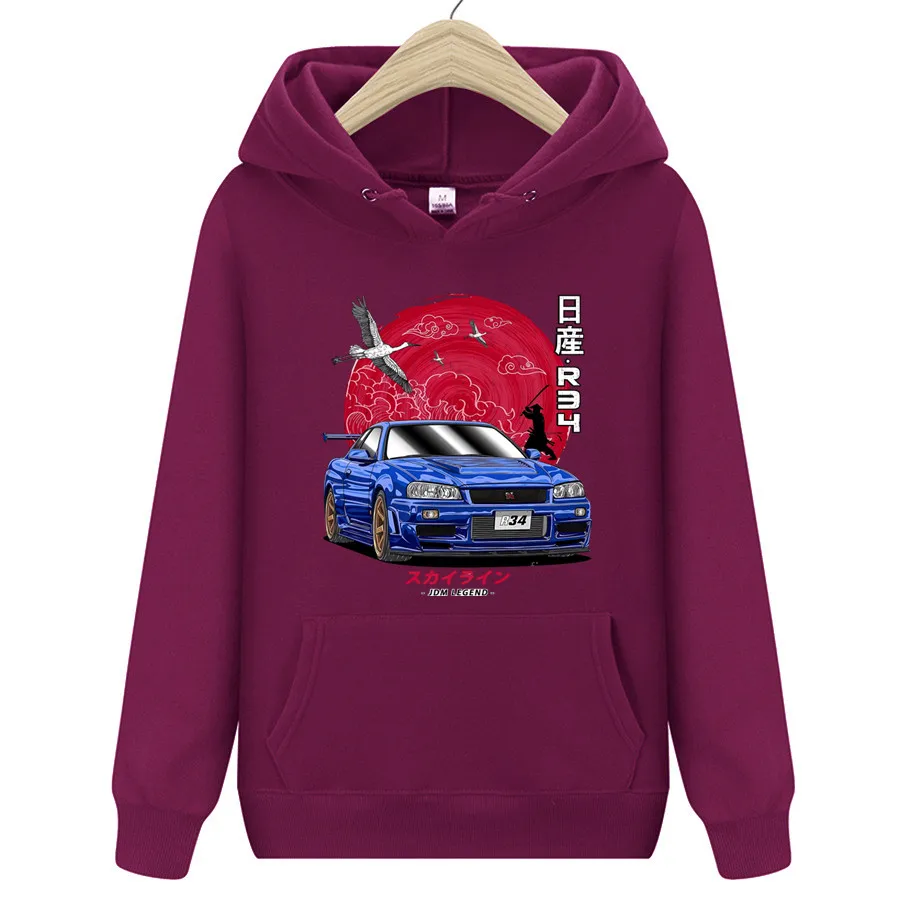 Moletom carro japonês roupas casuais moletom com capuz pulôver moletom estampado carro padrão moletom com capuz