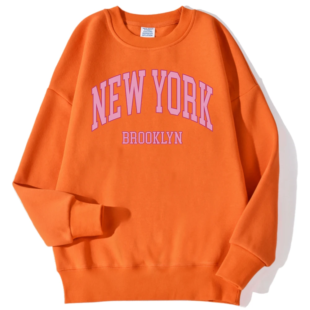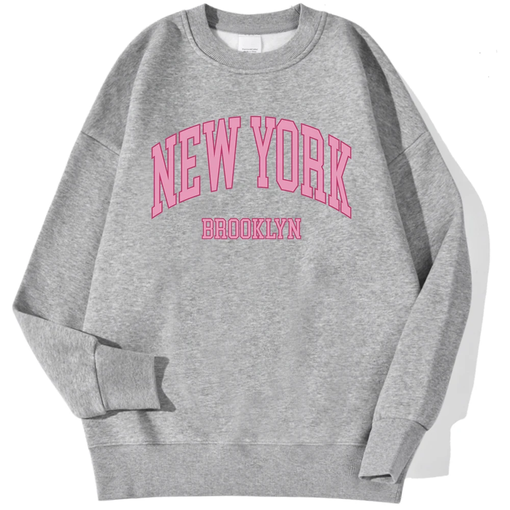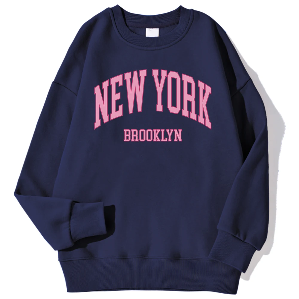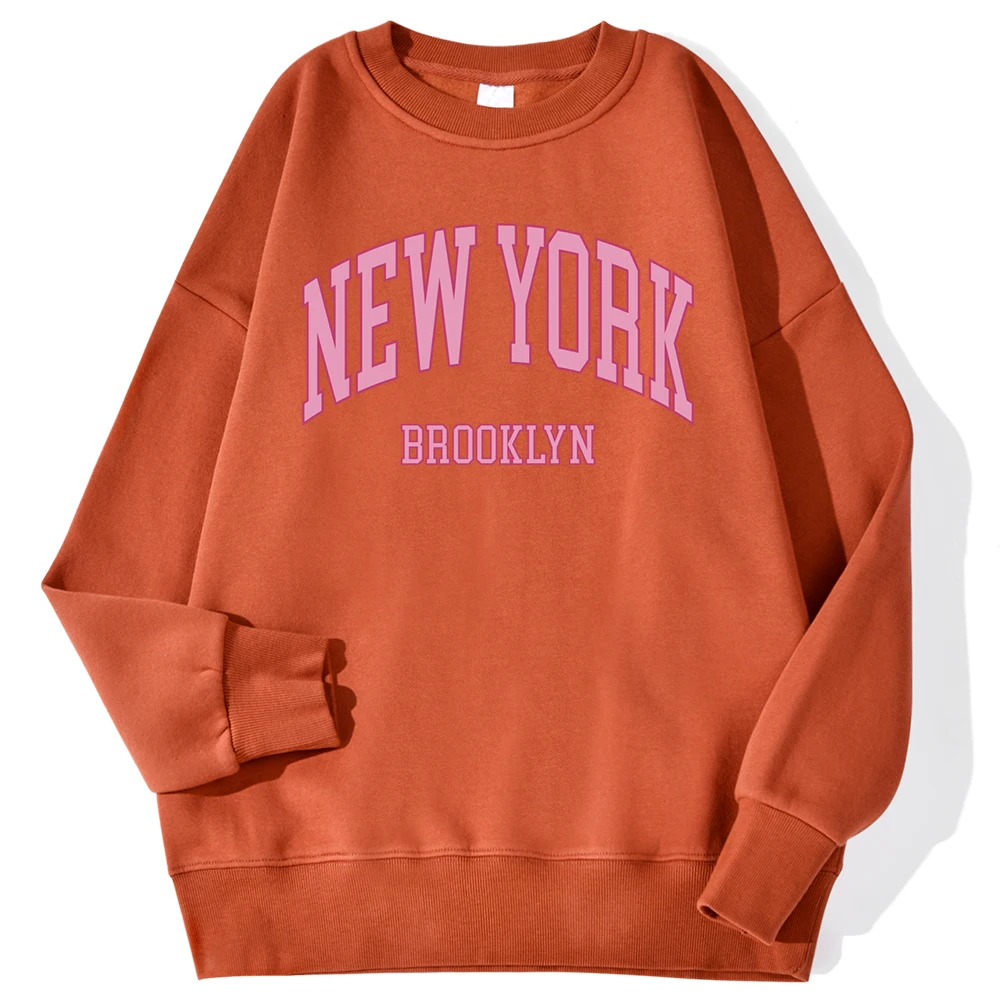 Moletom masculino de new york - nova york, brooklyn, rosa, cidade, estampas de letras, outono, rua, gola redonda, pulôveres de lã, quente, solto, roupas esportivas