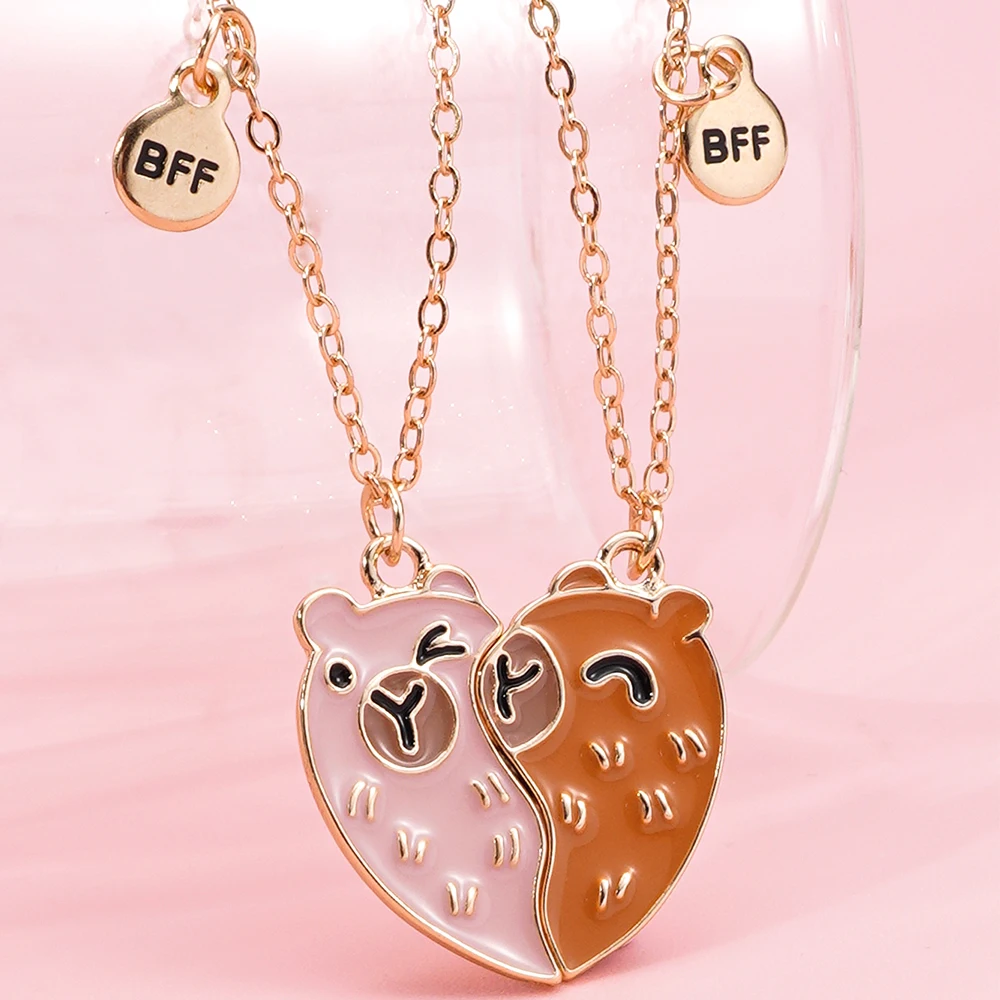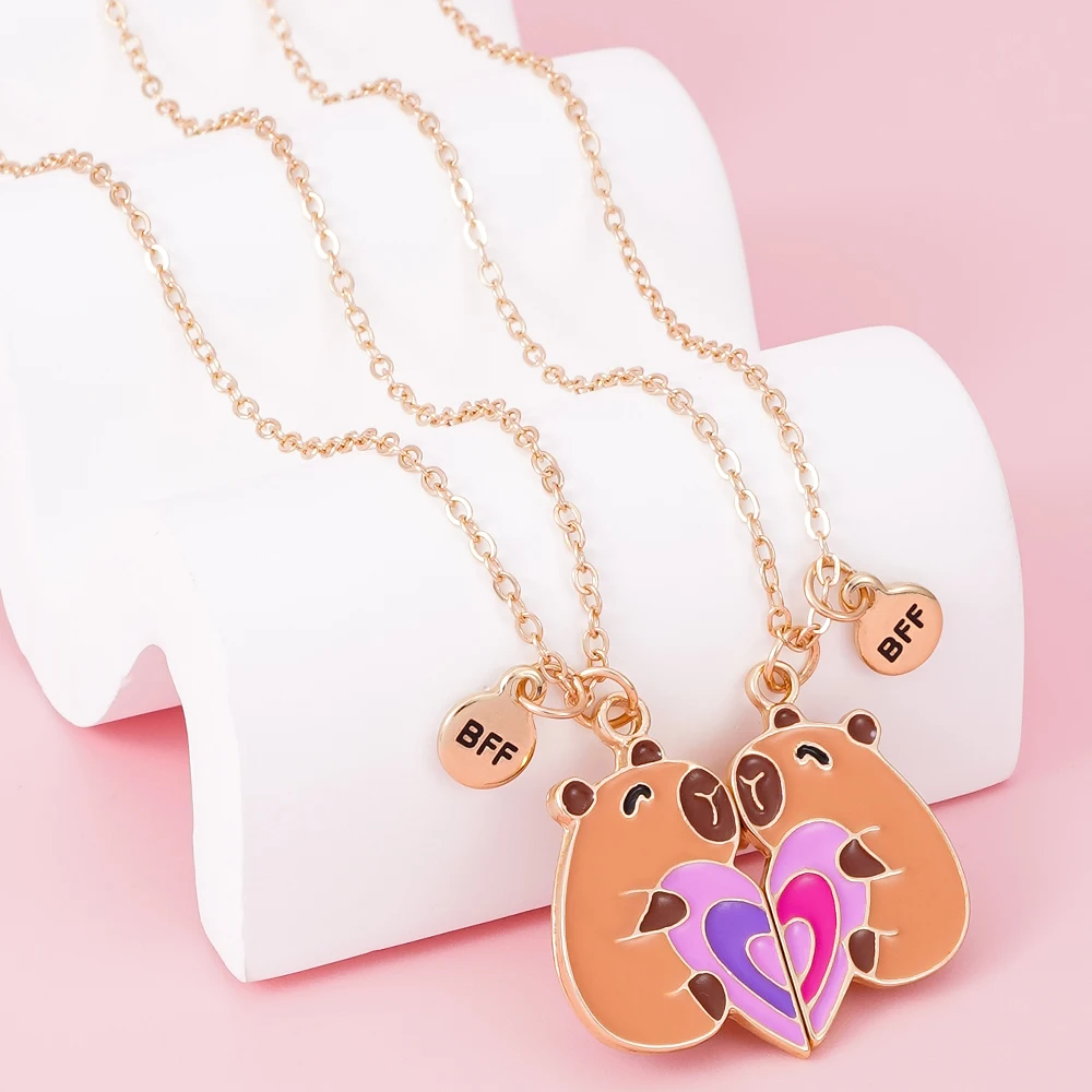 Qpeach 2Pcs/set Cute Cartoon Capybara Pendant Best Friend Girl BFF Necklace for Besties Friendship Jewelry Gifts