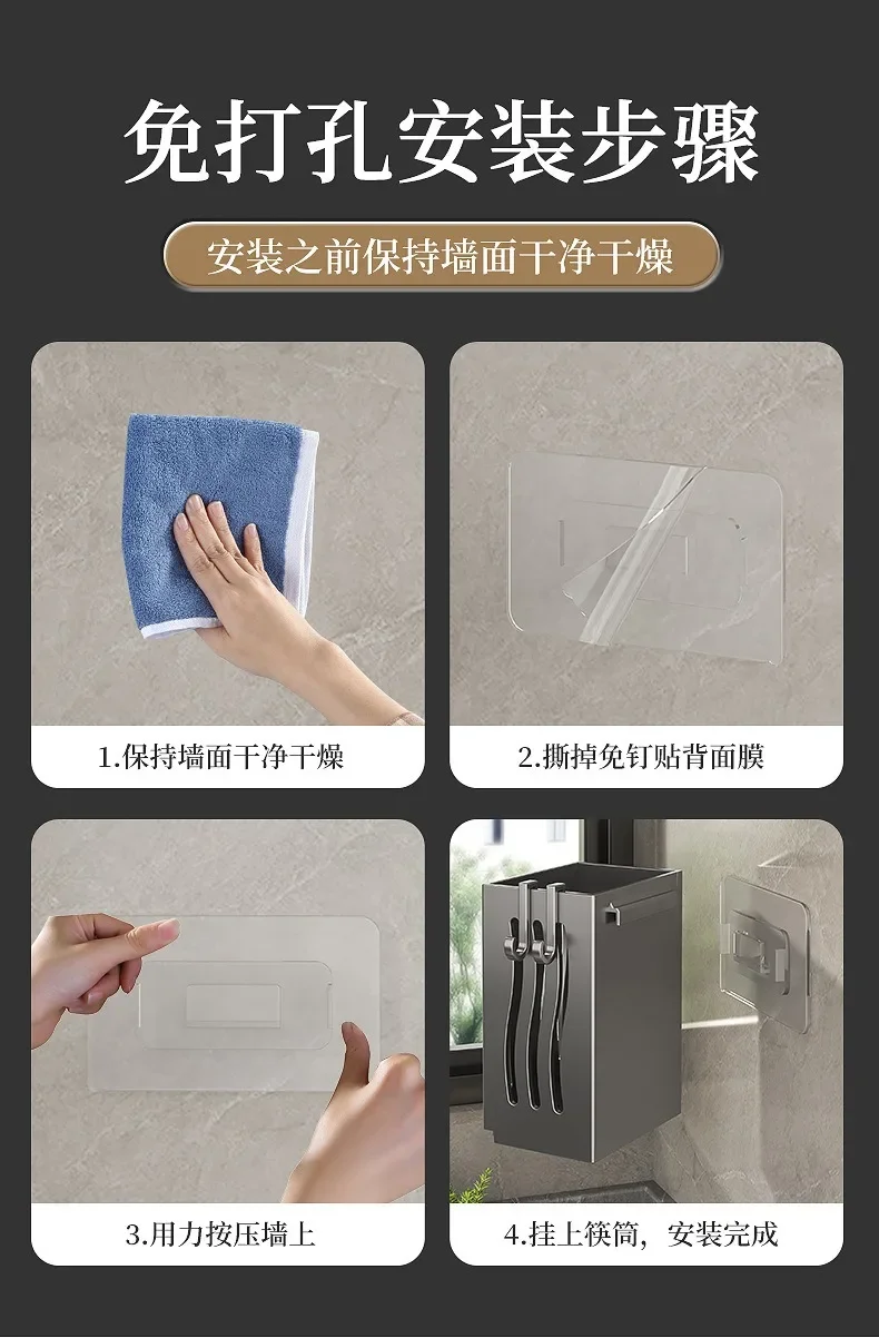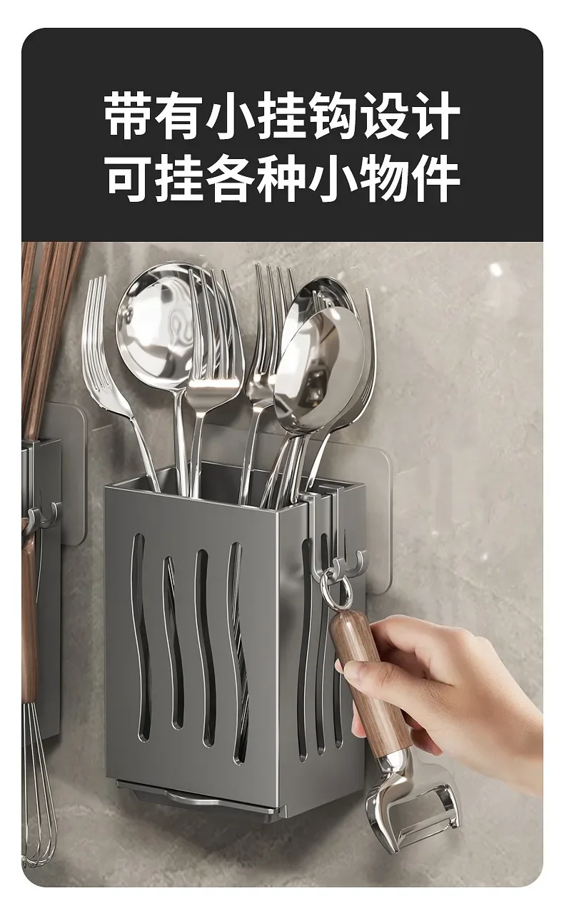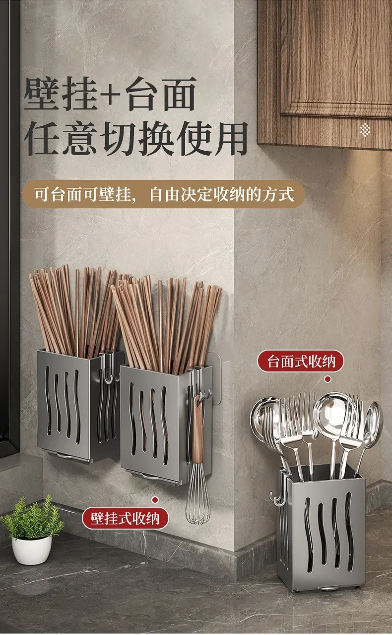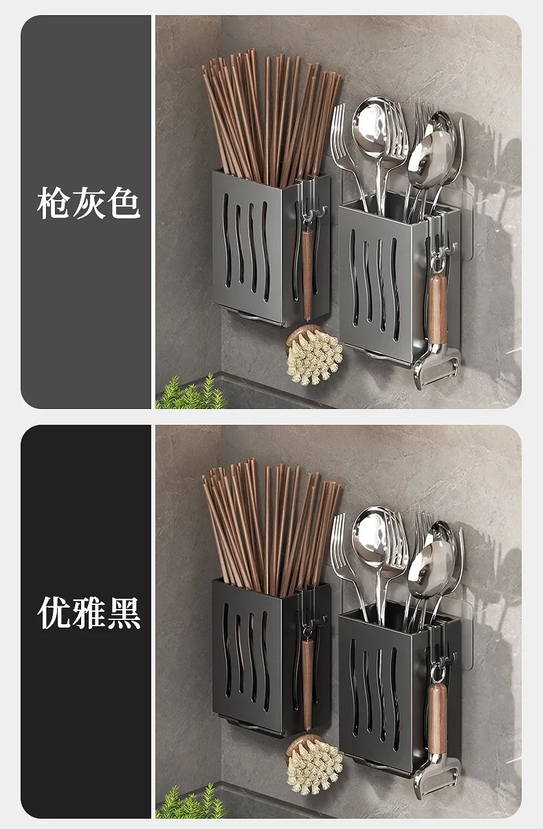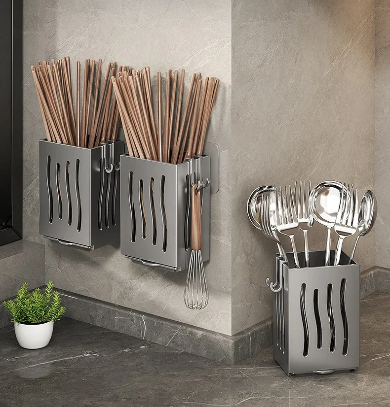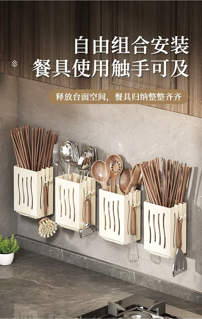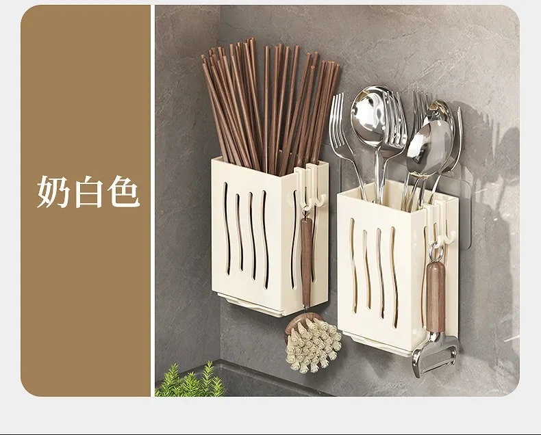 Rack de utensílio de cozinha de 1 peça-suporte de pauzinho de drenagem multifuncional, caixa de armazenamento de talheres de parede ou independente, plástico